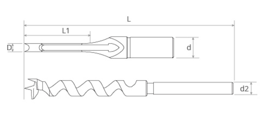 Diseñadas para una expulsión eficiente de virutas, las brocas tienen puntas de corte y espuelas bien rectificadas para compatibilidad con una variedad de mortajadoras.
